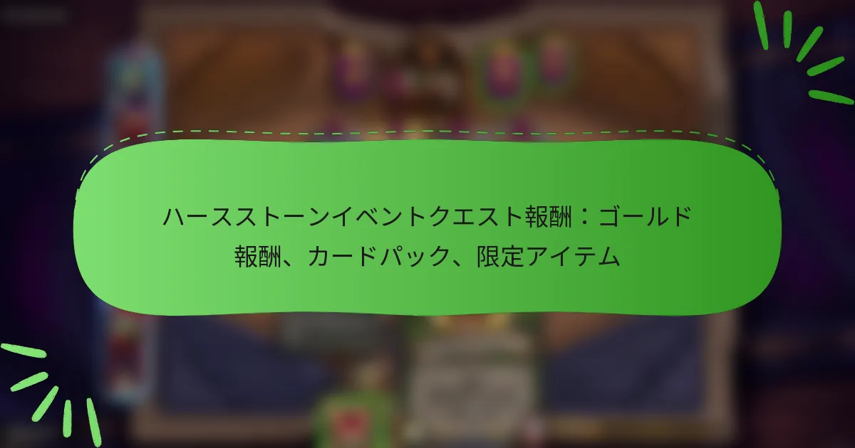 ハースストーンのイベントクエストは、プレイヤーに独自の報酬を提供する特別なゲーム内チャレンジです。これには、限定スキン、ユニークなカードバック、特別なエモートが含まれます。これらのクエストは、特定のイベント中にプレイヤーのエンゲージメントを高め、貴重なアイテムを獲得する楽しい方法を提供するように設計されています。